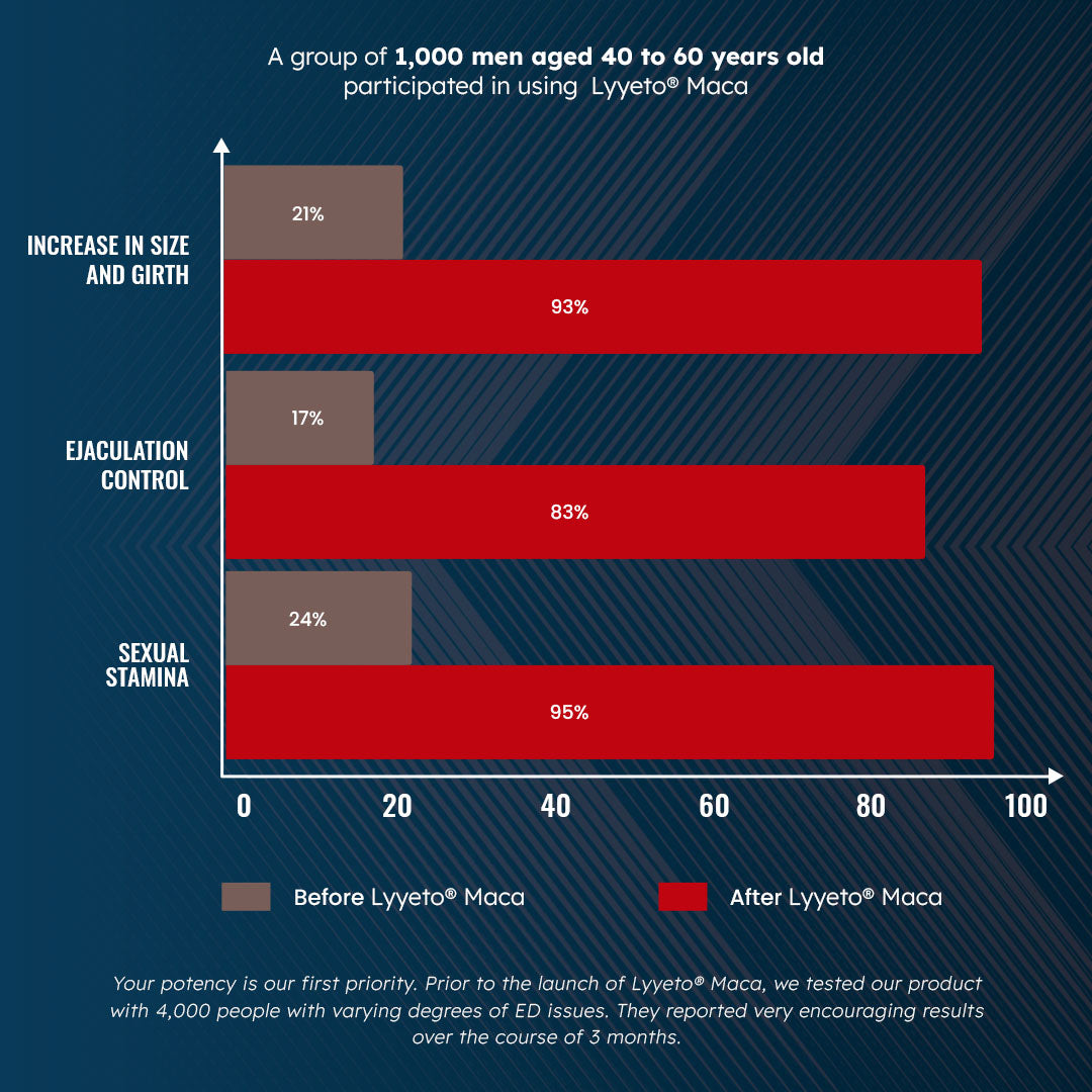 Lyyeto® Maca offers a better solution. Using natural ingredients and ancient herbal wisdom, it enhances blood flow, boosts stamina, and strengthens your body without the risks. This powerful formula supports your sexual health while being gentle on your system.