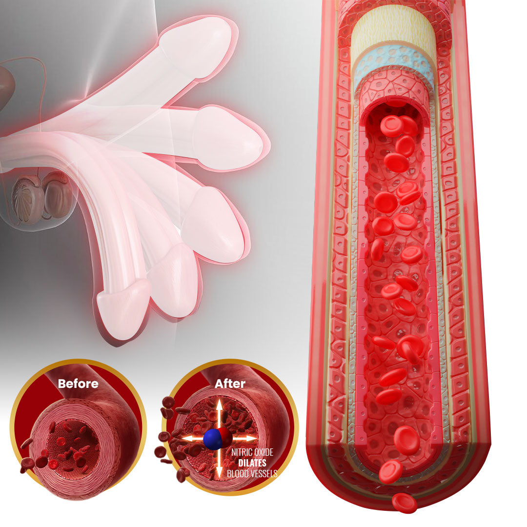 It increases blood flow to the penile area by boosting nitric oxide levels and supports healthy testosterone production for improved sexual function.