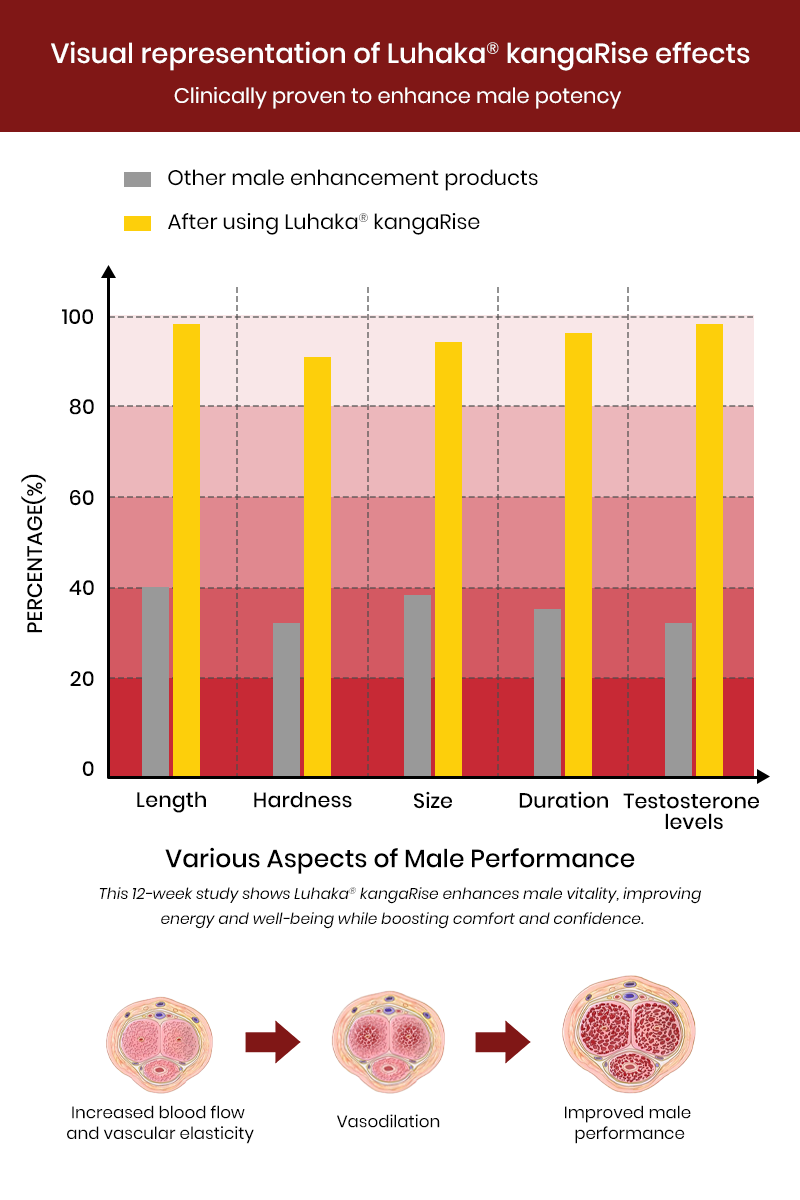 In a comprehensive clinical study involving 2000 participants, the key natural ingredients in Luhaka® KangaRise demonstrated significant results in enhancing erection quality, endurance, and overall sexual performance in men.
