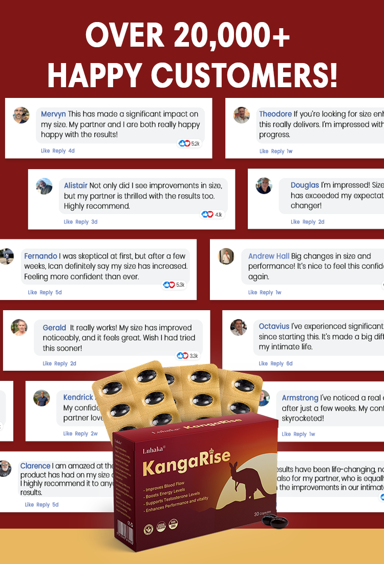 I used to be so insecure about my size, and it was affecting my intimacy with my partner. I decided to give it a shot and bought Luhaka® KangaRise, and let me tell you, it changed my life! I used it for a month, and guess what? My penis grew permanently, and I feel energized like I'm 20 again! It's like a whole new me!