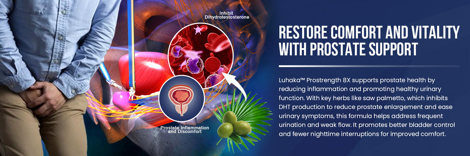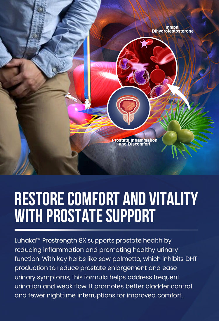 Luhaka™ Prostrength 8X is a natural supplement designed to support prostate health, improve urinary flow, and promote overall male vitality. It combines proven ingredients to address common prostate-related issues.
