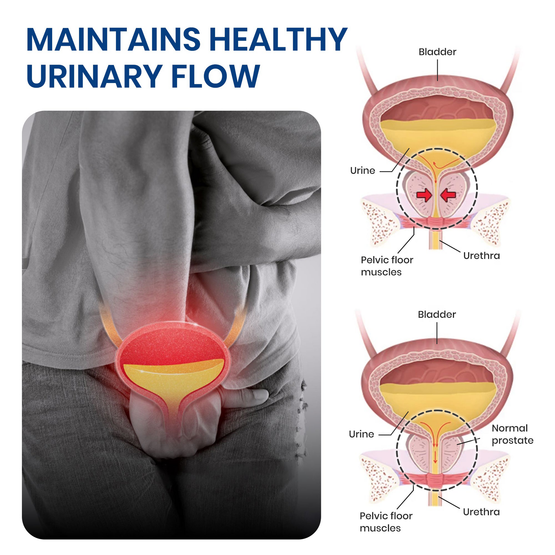 It supports prostate health, enhances urinary flow, improves sexual function, and boosts overall vitality through targeted nutrients and herbal extracts.
